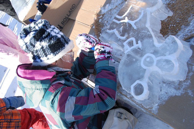 When my family arrived at Ottawa, we saw a lot of signs for Winterlude. The first site my family visited was Crystal Garden. The first activity we did there was learning the basics of ice carving and how to use a chisel. We were greeted by Kenny Hayden, the ice carving instructor, at a fountain. Around the fountain, there were a bunch of stations with a little pre-mold ice sculpture at each of them. We were handed safety goggles before we headed to our stations. My brother and I chose a puppy to carve. We were given instructions on how to carve safely with a chisel. I soon got to try ice carving on my own. It’s harder than it looks! Luckily, I was given a couple tips: