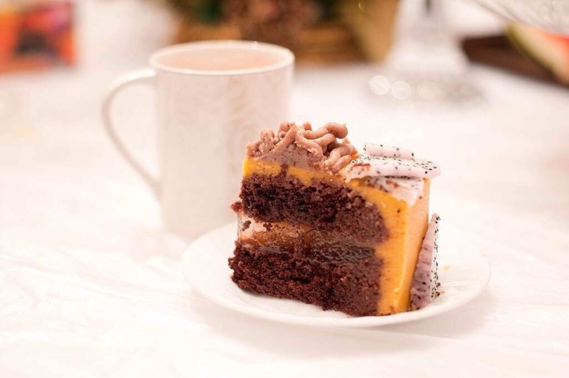 Cake – its tasty sugary mousse against a soft bouncy cake in the center – how nice. Well, pumpkin cake is something you could never imagine. Made of chestnut butter, chocolate cake, Jelly, and dressed with pumpkin mousse, you just can’t resist that happy feeling that you get from the creative dessert.